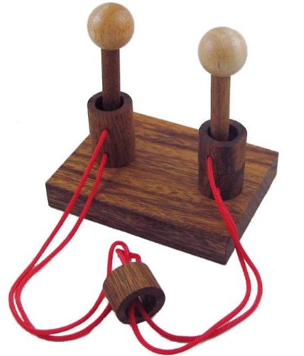 This is a great classic disentanglement wooden brain teaser puzzle. You need to separate the wooden ring completely from the string. Don't consider it to be an easy puzzle; one mistake can make it even harder. Read more...