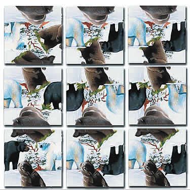They're cute and cuddly as stuffed playmates, but in the wild the bears that adorn this version of Scramble Squares are among the most powerful creatures on earth. Easy to Play, but Hard to Solve is the motto for this deceptively simple-looking puzzle. By the time you've become addicted and find yourself unable to solve the thing, you'll realize it's not so much a motto as a warning. Nine colorfully illustrated cardboard 4-by-4-inch squares depict various unfinished images of polar bears, brown bears, and black bears along their edges. The images must be matched and the nine squares arranged in a larger square. An ingenious, elegantly executed puzzle idea, Scramble Squares will have you simultaneously blessing and cursing its inventor. --Claire Dederer