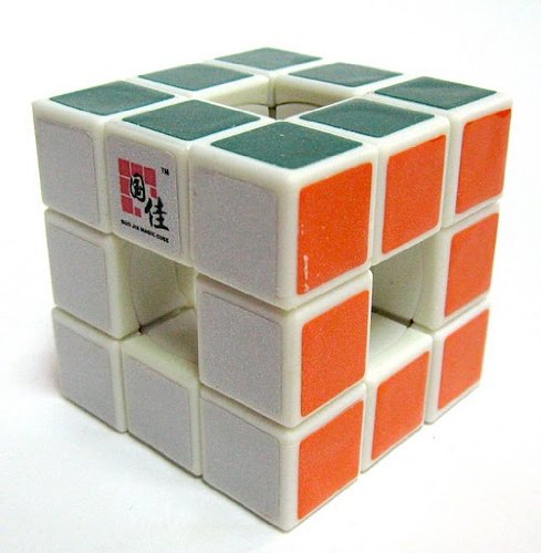 Size : 5.6cm x 5.6cm x 5.6cm (2.2 inch x 2.2 inch x 2x2 inch).Description :The Void Cube is a 3-D mechanical puzzle similar to a Rubik's Cube, with the notable difference being that the center "cubes" are missing, which causes the puzzle to resemble a level 1 Menger sponge. The central "spider" used on the Rubik's Cube is also absent, creating holes straight through the cube on all three axes. Due to the restricted volume of the puzzle it employs an entirely different structural mechanism from a regular Rubik's Cube. The Void Cube was invented by Katsuhiko Okamoto. Read more...